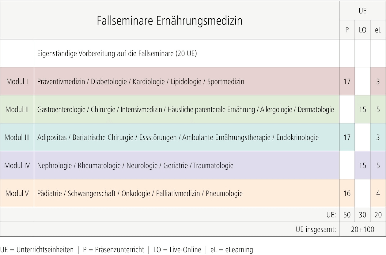 Fallseminare Zusatzqualifikation „Ernährungsmedizin“ (120 UE)